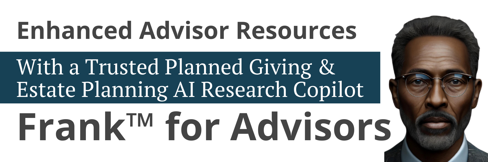 Frank™ for Advisors strengthens the community advisor page on your website. A ‘lite’ version of Frank™ from the Gift Planner’s Workstation™ offering the same expert knowledge base, without login credentials required. Advisors can access Frank™ for Advisors while researching complex gift options and scenarios- each providing recommended instructions as well as backed by the current rulings and state/federal regulations. Read more on Frank™ for Advisors here…